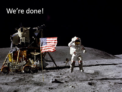 Think of the concept you want to make, all the way to the end. Then, search a highly specific (stock) image that goes with it. Armstrong waiving his hand on the moon, a bunch of empty, used coffee cups on a desk.