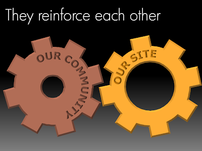 Sometimes two things go together hand in hand, they make each other stronger. Big interlocking wheels are a great way to show this in PowerPoint. Add some nice circular text and here you go. Resist the tempation to make them turn using an animation though...