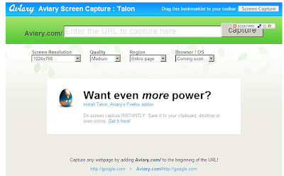 Mashable pointed to this usefull tool yesterday. Aviary is an "in-the-cloud" image manipulation utility (trying to take on Photoshop and others). To lure more users to their site, they have created a neat screen shot capture tool (bookmark this URL).