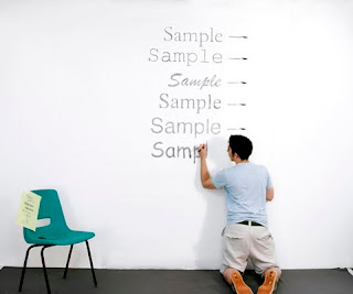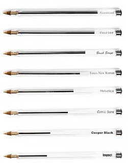 Matt Robinson engineered an interesting experiment to test it. Take low-cost, transparent ball points, use them to write the same text in different fonts on a a wall, and see how much ink is left in them afterwards. A quantification of typographic color use (and/or) waste of ink.
