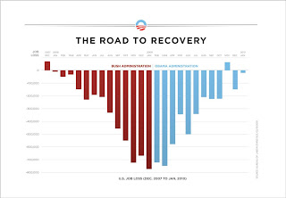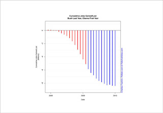 On the Fast Company site, Prof. Charles Franklin put out a second graph depicting exactly the same data, but using a different metric, cumulative job loss: