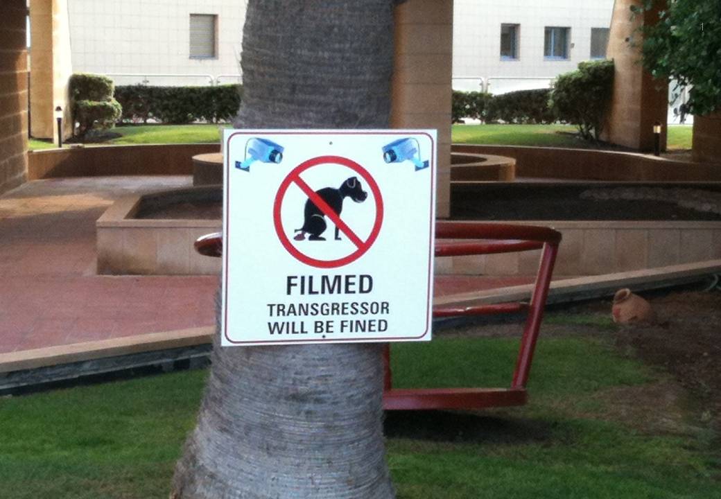 Great novels, movies, and painting leave room for the audience to fill in the blank spots. This photo found outside my own is the exact opposite. Ugly graphics worked out in the greatest detail, even providing the dog with a pair of mean red eyes that would fit the hound of the baskervilles. It is possible to say/show less and still convey the message...