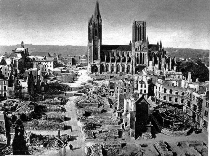 For those interested, the cathedral in question is the one in Coutances, Normandy, 20 km from this year's holiday home. This majestic old building stands in the middle of the city center that was largely rebuild after the July 1944 battles. It was almost unscathed.