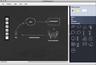 Simple diagrams (link) is a nice little tool to create simple sketches in the spirit of Dan Roam's book "The back of the napkin" (review). You can either use it as a sketch tool to develop ideas, or as slides in your presentation. The extreme scenario would be to create an entire presentation out of these types of diagrams.