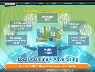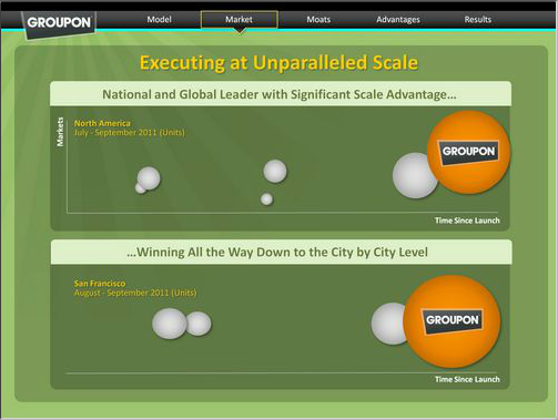 The investor presentation (both slides and video) of the upcoming Groupon IPO are online (link). Robin Wouters of TechCrunch has made a few screen shots of some of the slides. Usually these presentations are held in private meetings with potential investors, and I think it is great that they are now available for everyone to see.